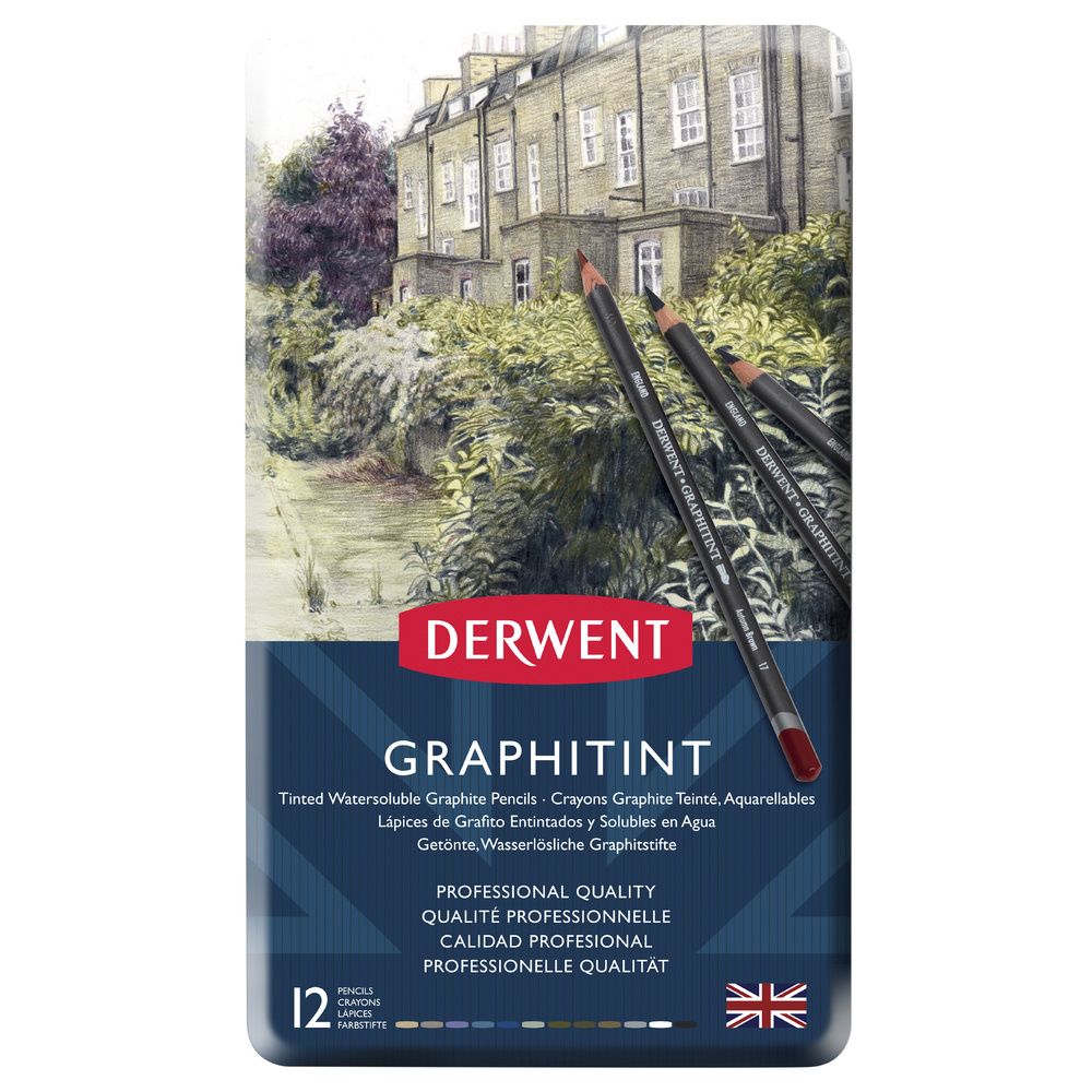Utilisé à sec, Derwent Graphitint fournit une certaine nuance, mais l’ajout d’eau transforme la couleur en teintes éclatantes et riches. Un mélange unique de graphite et de pigments de couleurs aquarellables dans un même crayon, avec comme avantage supplémentaire le fait de pouvoir en plus être gommé facilement.