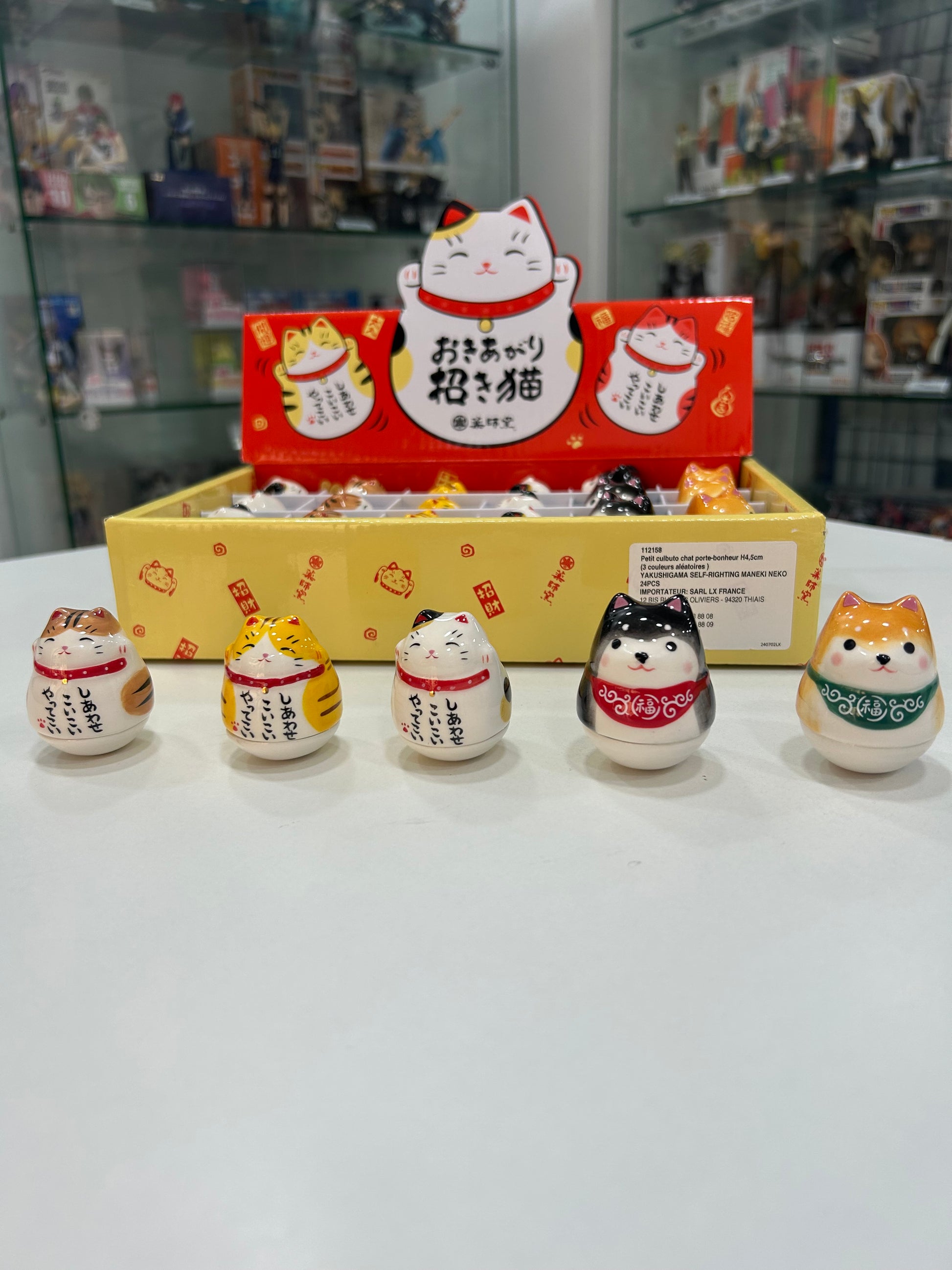 Petit culbuto chat porte-bonheur et Chien Shiba idéal pour les amoureux des chats et chiens.